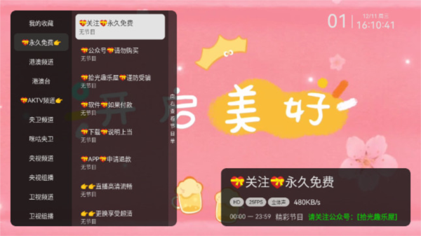 3. 播放界面内可快速切换频道,并配有准确的节目预告与进度提示;