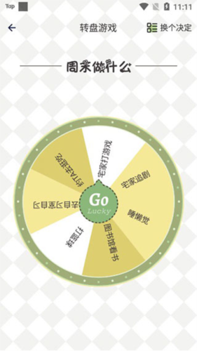 选择其中一个进入,可以看到通过大转盘的方式决定周末需要做什么;