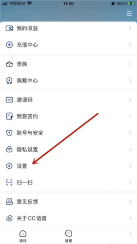 1、下载并打开CC语音应用,在首页点击右下角【我的】进入个人页面。