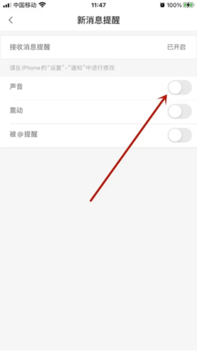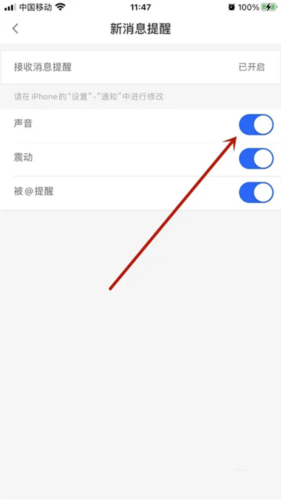 4、当【声音】右侧的开关变为蓝色时,即表示成功开启声音提醒功能。