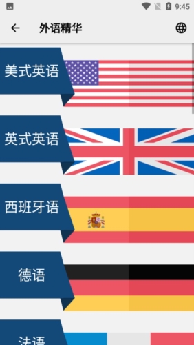 4、软件支持十八种常用语言学习,包括西班牙语、德语、意大利语、俄语等,满足多样需求;