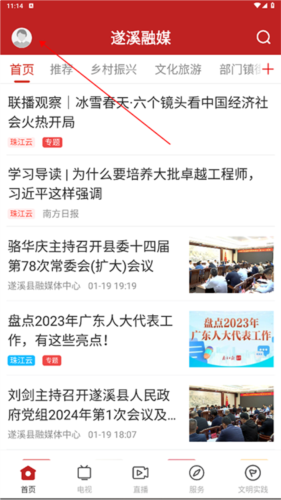 1、下载并打开遂溪融媒app,在首页左上角点击【我的】;
