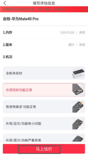 5、如实填写设备的使用状况、功能是否正常等信息,点击马上估价提交。