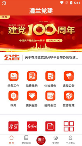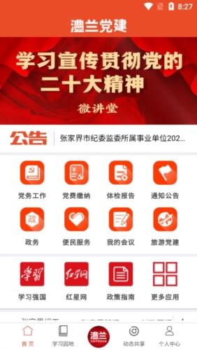 3、登录后进入首页,可见多个党务工作模块;