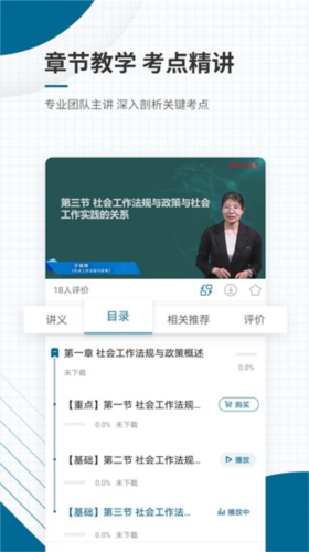 视频课程由经验丰富的命题研究专家主讲,免费开放大部分教材的系统精讲内容,帮助用户打牢知识基础。
