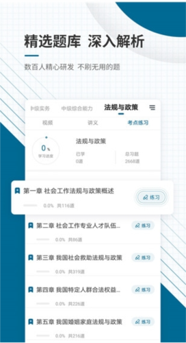这款应用能帮助我们在日常工作中掌握一门专业技能,每天花少量时间学习,长期积累便能顺利通过相关考试。它整理了历年考试的核心知识点,并标注了每个考点的出现频率,让备考方向更清晰。应用全面收录近五年社会工作者考试的真题与模拟题库,包含每日练习、高频考点及海量带解析的习题,一站式满足听课与刷题两大需求。