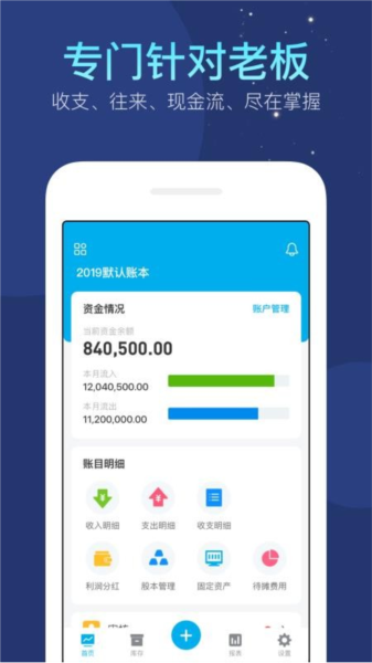 1、轻松管理企业账本,清晰掌握收支、往来款项及现金流动态;