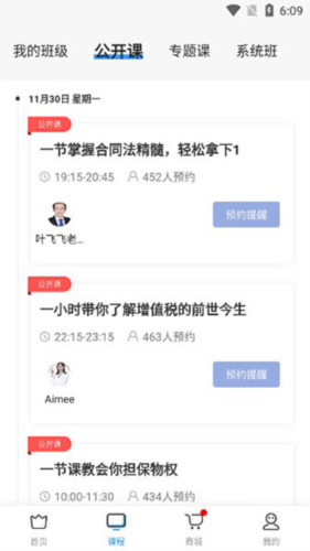 5、课程界面包含公开课、专题课及系统班等多种类型。