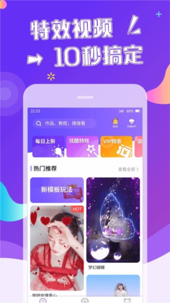 5、推荐热门爆款视频模板,助你轻松创作同款;