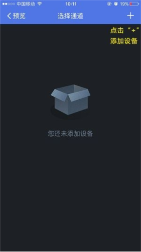 进入APP预览界面,点击右上角的“+”号添加设备。
