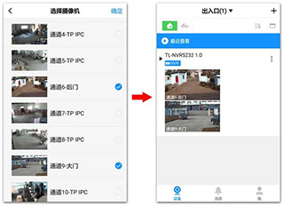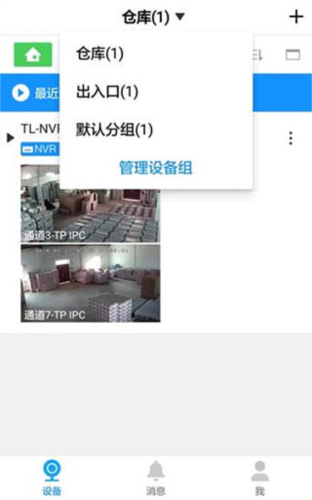 每次登录APP后,点击顶部的分组名称,即可快速切换并查看不同分组内的监控通道。