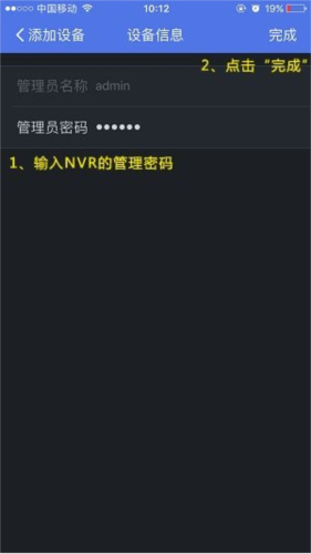 在添加界面选择“扫一扫”,扫描NVR机身背面或系统设置中云服务页面显示的二维码;输入NVR的管理密码,点击“完成”即可。