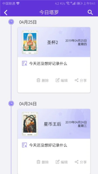 1、塔罗笔记功能可随时记录每日抽牌与牌阵的心灵体会,支持关键词查找,方便你回顾塔罗给予的指引;