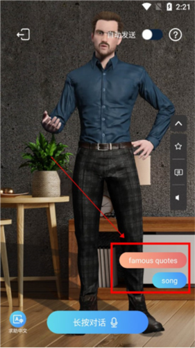 4、进入对话界面,长按对话框输入语音;