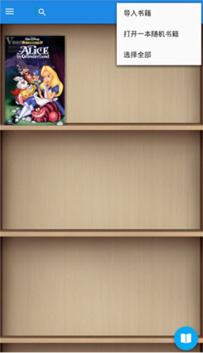 3、点击书架页面右上角的功能按钮,选择“导入书籍”,即可扫描本地文件或搜索书架已有图书。