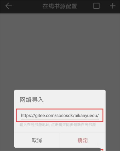 5、选择网络导入或本地导入;以网络导入为例,输入在线书源地址后确认即可。
