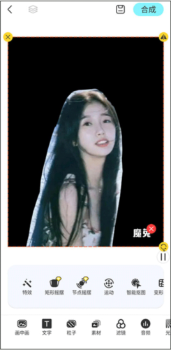 6、软件也支持免费抠图功能,编辑完成后点击右上角合成按钮,即可保存至相册。