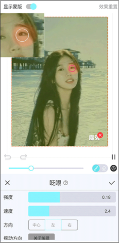 5、以流行的眨眼特效为例,调整画笔粗细,涂抹眼部区域,效果即刻生成。