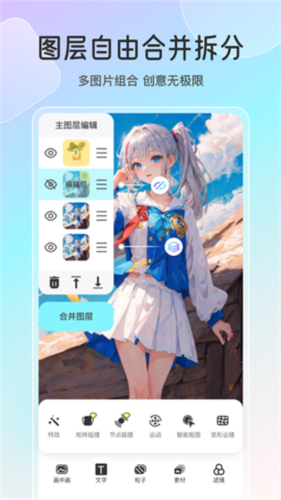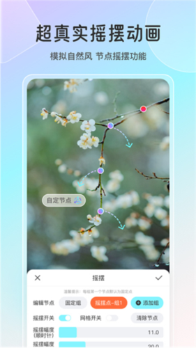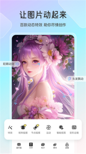 2、超多特效:包括眨眼、水流、衣裙摇摆、水波纹、眼球跟踪、光效、节点摇摆动画等图片特效。