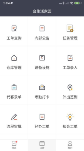 合管家app是一款面向物业管理人员的专业工单管理工具。通过安卓版本,使用者能够实时监控设备运行状况,查阅详细资料,并处理维修、安全巡检与装修整改等事务。该应用支持在线签到与拍照上传,同时提供流程审批服务以提升工作效能。其设备设施模块帮助用户迅速掌握各类设备信息。用户可以便捷浏览多种工单并高效完成任务,内置通讯录功能方便联系业主与同事,为日常办公提供支持。