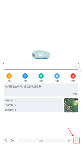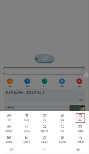 1、在浏览器首页点击右下角设置图标,随后选择插件功能入口。