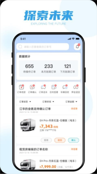 蓝擎智行官网版是一款功能全面、操作简单且高度智能的新能源轻卡租赁管理平台。它整合了客户管理、订单收款、逾期催收、退款审批及车辆管控等核心功能,有效提升了商家的运营效率与服务品质。使用该平台,商家不仅能轻松管理日常事务,还能实时监控关键业务指标,为决策提供可靠依据。如果您从事新能源轻卡租赁业务,欢迎下载蓝擎智行官网版,开启智能管理新体验。