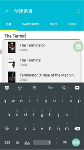 序号已自动生成,直接填写“Title”字段即可。注意此处应输入英文名,MD会在输入时自动从themoviedb.org检索匹配的电影信息。例如输入“The Terminal”,下方会显示匹配结果,选择正确项后相关详情将自动填充。需手动填写中文名、评分、出借人及观看状态等信息。若未搜索到或信息不全,可手动补全;海报等区域可拍照添加,但会占用较多云存储空间。