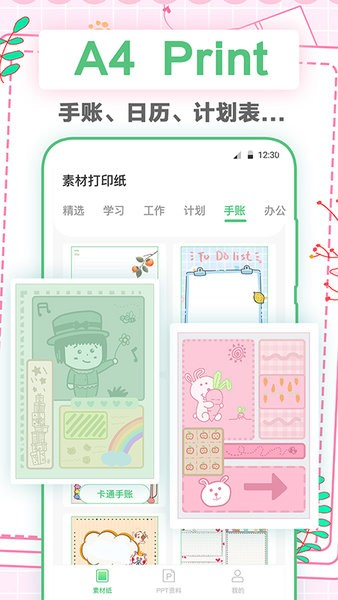 新增多款A4打印素材模板;