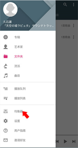 2、在弹出菜单中选择均衡器选项。