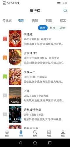 3、首页设有实时排行榜,帮助用户快速了解当前热门影片;