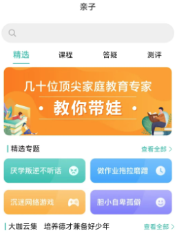 为家长提供孙云晓、卢勤等数十位知名家庭教育专家的音视频课程;通过问题解答与能力测评,协助家长理解家庭教育理念,掌握科学育儿方法。