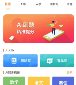 帮助中小学生进行日常AI习题训练,观看AI名师讲解视频,使用全景单词记忆与智能听写功能;内容与学校教材同步,便于学生发现知识薄弱环节,实现成绩提升。