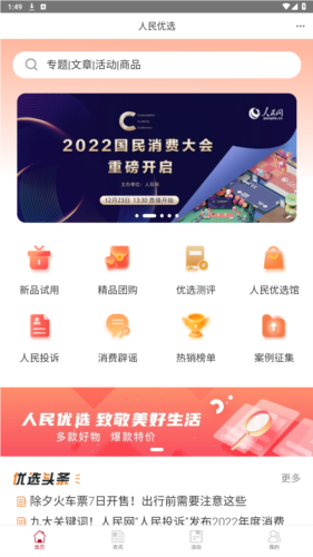 1、打开应用后,点击首页的【人民优选馆】入口。