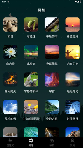4、【呼吸】板块提供专业的呼吸节奏训练;通过跟随引导调整呼吸,这是一种简单有效的放松方式。