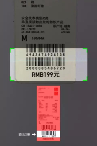 3、直接扫描衣物条形码,快速获取信息并尝试在线搭配;