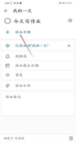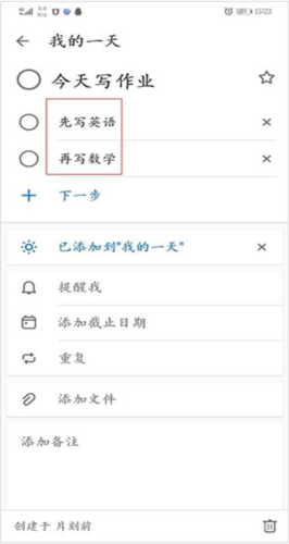 7、步骤添加完毕,返回“我的一天”界面,该任务旁会显示已包含的步骤数量。