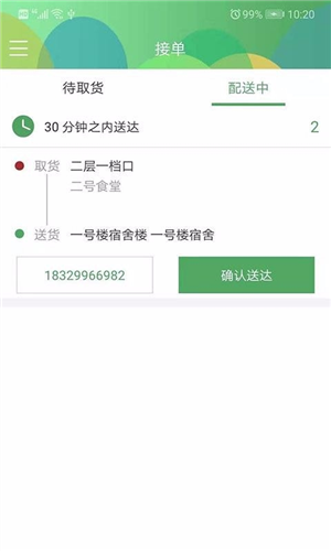 5、随时查看正在配送的订单,直接获取订单具体信息;