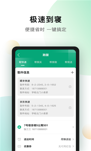 4、使用跑腿功能,可办理寄件、取快递、代买物品等上门服务;