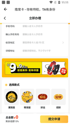 3、填写个人信息,选择喜欢的款式,点击【提交申请】;完成后等待快递送达即可。