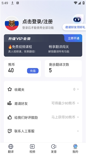 6、操作简单直接:输入文字或语音即可获得翻译;学习内容按难度分级,方便初学者使用。