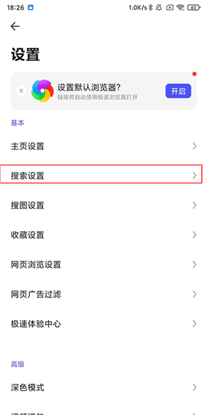 3、选择【搜索设置】选项;