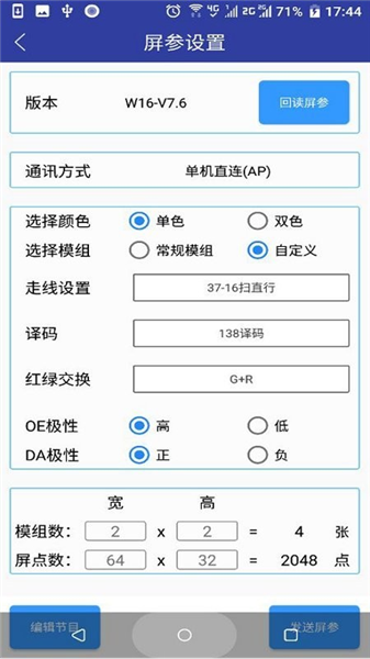 1. 仅兼容上海灵信视觉6代系列WIFI控制卡;