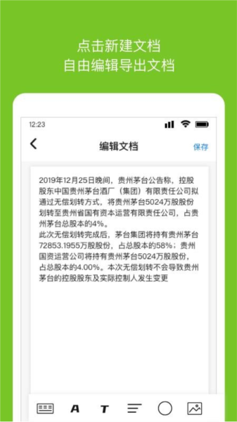 1、新建文档:允许用户创建新文档,支持手动输入或导入手机本地文件;
