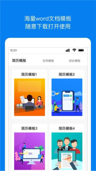 内置大量Word文档模板,用户可随意下载并使用。