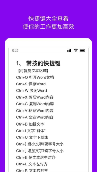 5、随时查阅快捷键大全,以便更高效地编辑文档;