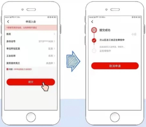 5. 等待审核:提交申请后由后台审核,通过后将收到短信通知;若状态显示“正在审核中”,可联系所在单位工会协助处理;认证成功即可领取电子会员卡。