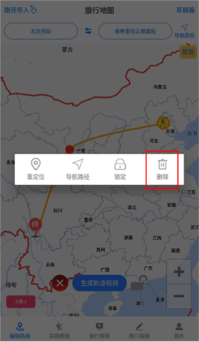 4、长按途径点可将其删除;