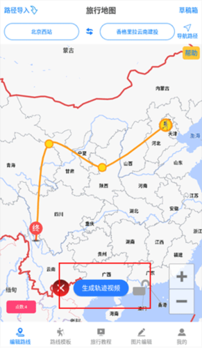 1、增加旅行路线轨迹动画视频功能;