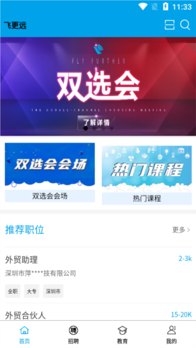 推荐职位:根据个人资料进行智能匹配,推送最可能合适的岗位;