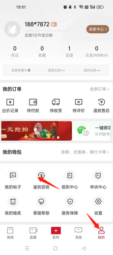 1、打开应用,点击底部“我的”选项,随后选择“鉴别回收”功能。